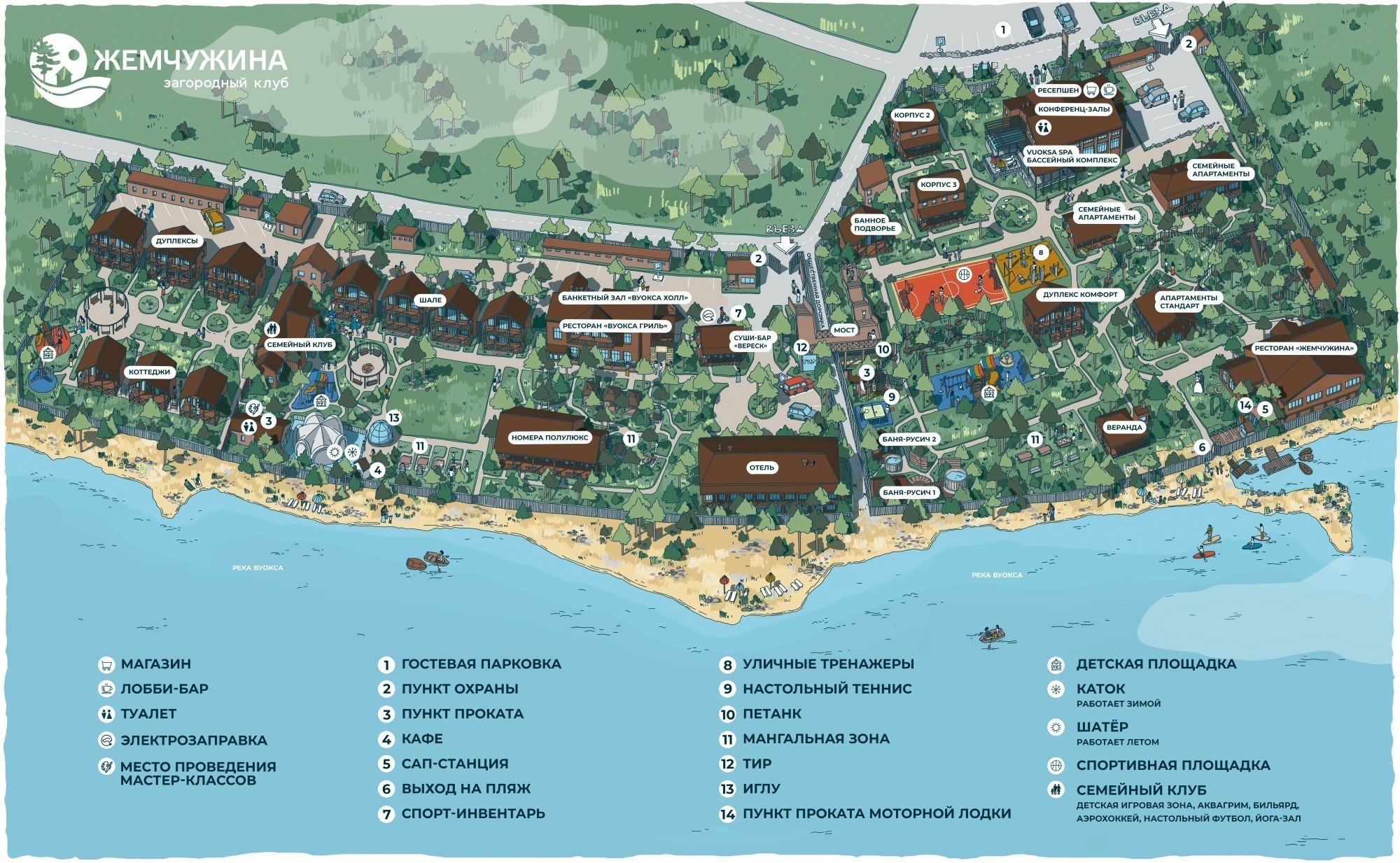 Оплата за вход на территорию учитывается в качестве депозита в ресторане «Вуокса Гриль» (за исключением праздничных дней, школьных каникул и праздничных мероприятий в клубе)